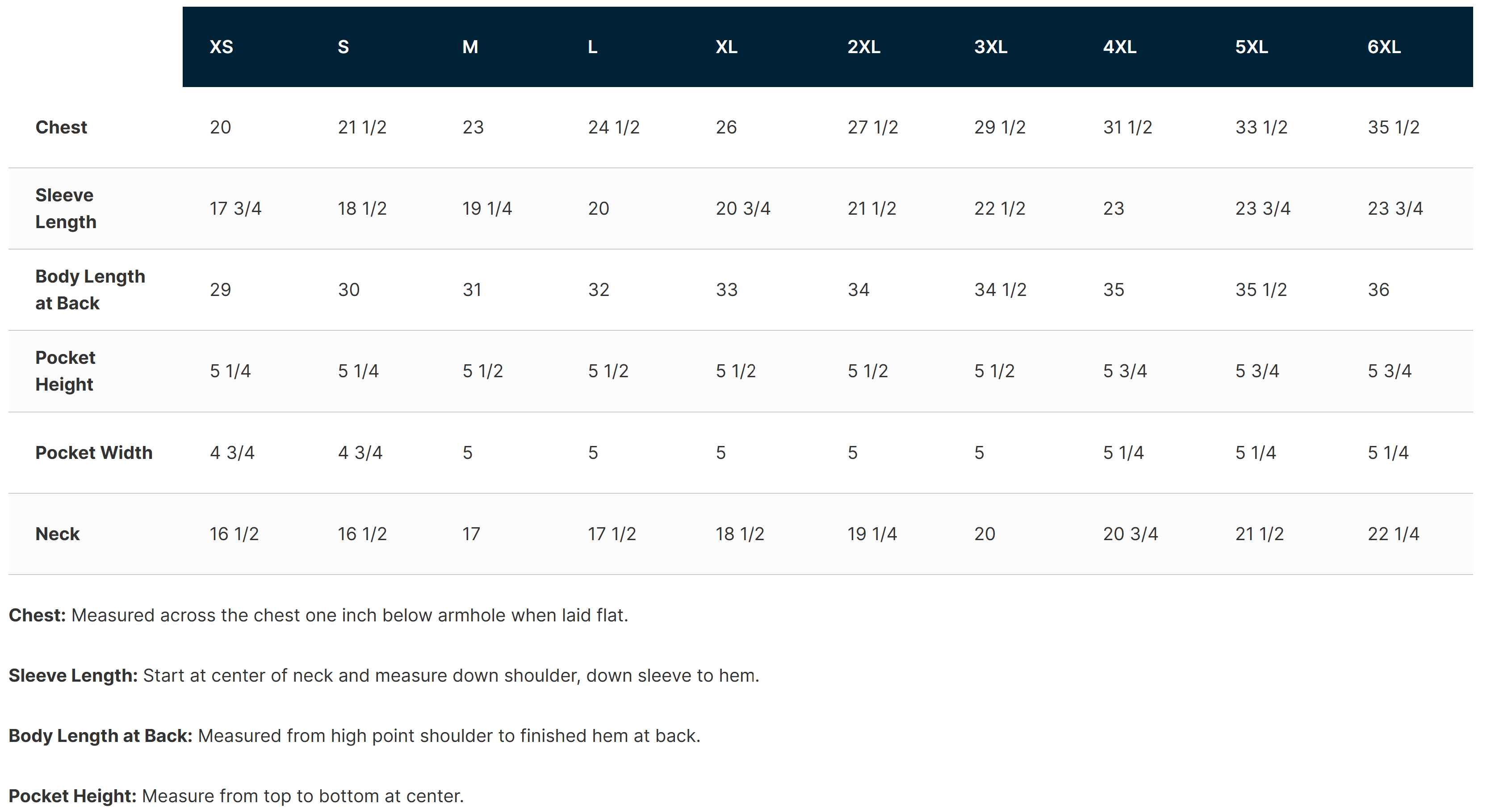 4.5-ounce, 55/45 cotton/poly Traditional, relaxed look Open collar Dyed-to-match buttons Adjustable cuffs